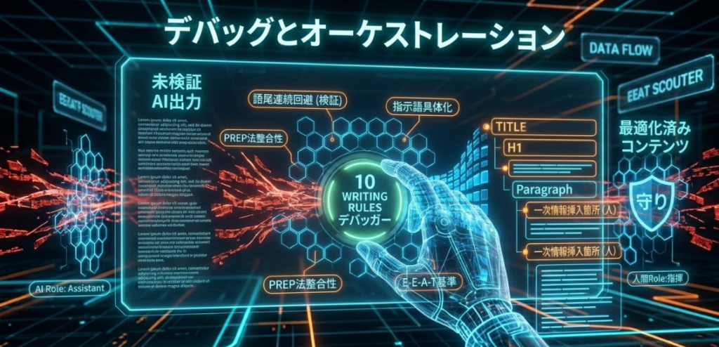 AIが出力した文章は、そのままでは「無難すぎる」あるいは「冗長である」場合が少なくありません。そこで、私は独自の「10のライティングルール」をリンター(静的解析ツール)のように適用し、文章をデバッグしています。