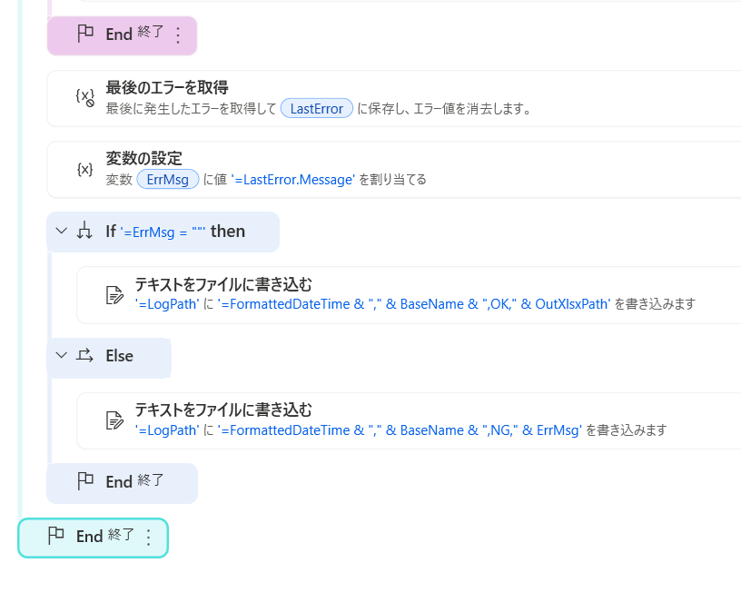 さらにログファイルへ処理結果(OK/NG)を自動出力する構成です。