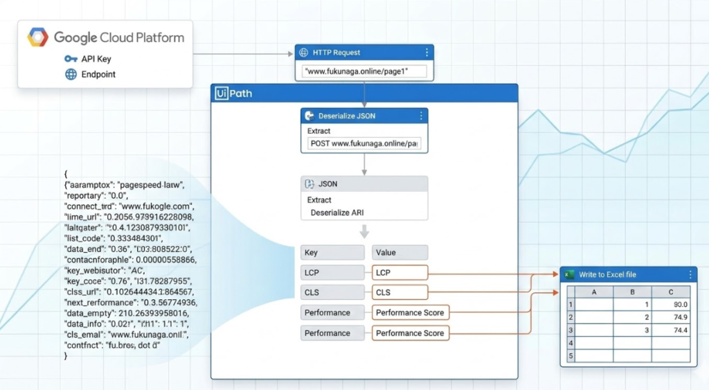 Googleが提供する「PageSpeed Insights API」をUiPathから呼び出すことで、プロフェッショナルな測定環境を構築できます。