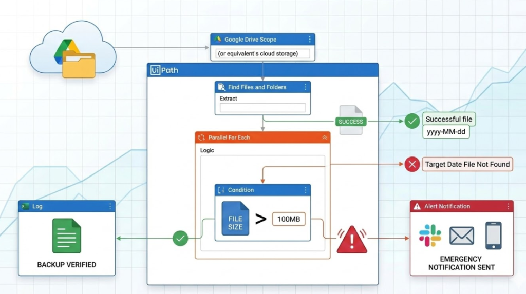WordPressプラグイン(UpdraftPlusなど)で自動バックアップを設定している場合、その保存先(Google Driveやサーバー上のフォルダ)をUiPathで監視します。