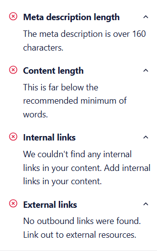 SEOツールで「Internal links」が赤色になっているのは、「この記事を読んだ後、読者はどこへ行けばいいの?」とGoogleに聞かれているような状態です。